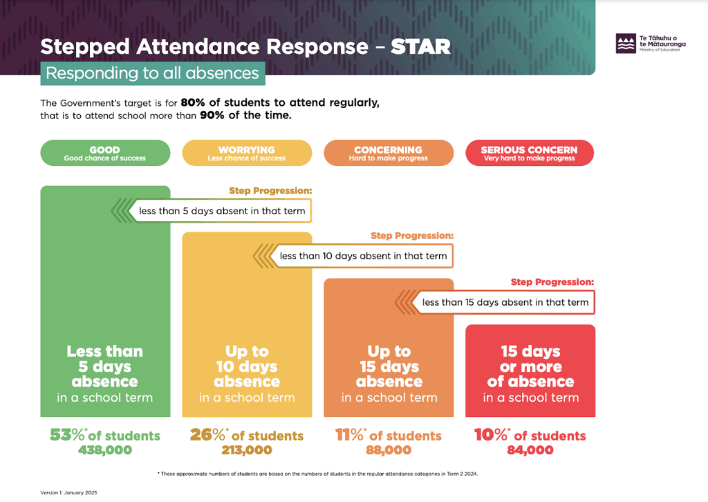 We recognise that every whānau’s circumstances are different, and our starting point is always understanding and support. The STAR framework helps ensure that concerns around attendance are identified early and responded to consistently, so students remain connected to their learning and are well supported to thrive.